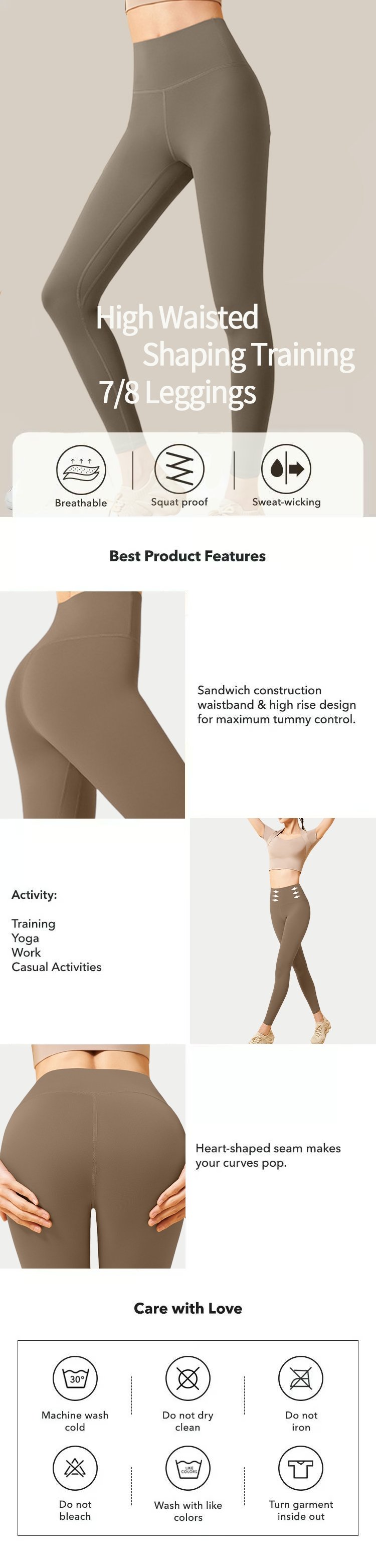 These Training Leggings feature a high-waisted design that flattens your tummy, giving you a sleek silhouette while providing excellent support for your core during workouts.